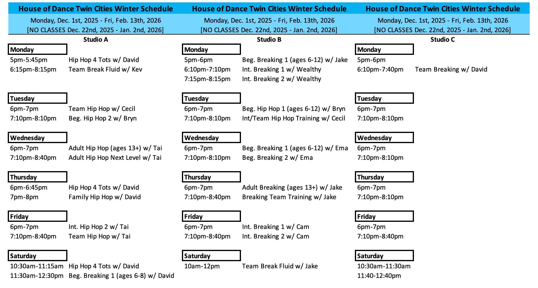 We are currently operating at student drop off only. Parents are welcomed back for the last 5-10 mins of class for cypher time.